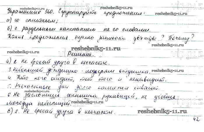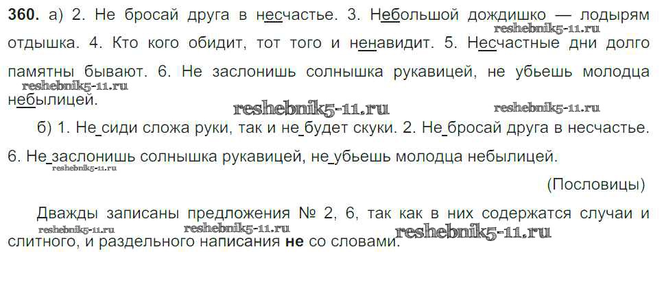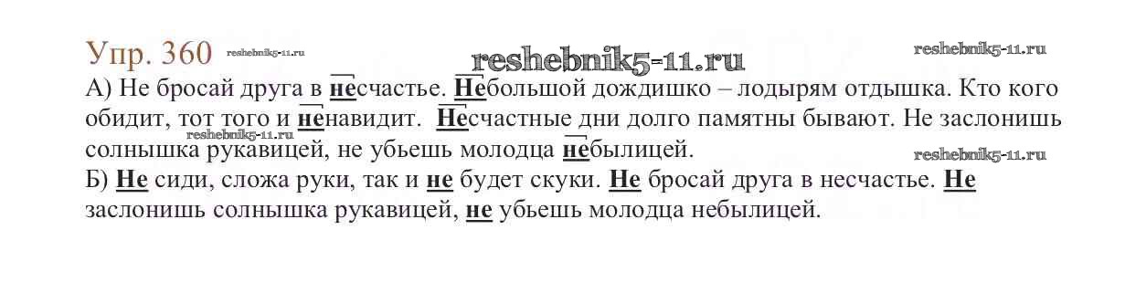 Готовая домашняя работа с ответами по Русскому языку за 6 класс Баранов, Ладыженская, Тростенцова, Григорян, Кулибаба Учебник Часть 1, 2 Просвещение 2015 ФГОС - Упражнения 360