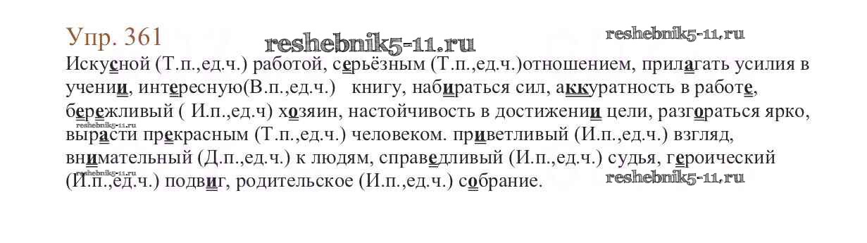 Готовая домашняя работа с ответами по Русскому языку за 6 класс Баранов, Ладыженская, Тростенцова, Григорян, Кулибаба Учебник Часть 1, 2 Просвещение 2015 ФГОС - Упражнения 361