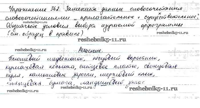 Готовая домашняя работа с ответами по Русскому языку за 6 класс Баранов, Ладыженская, Тростенцова, Григорян, Кулибаба Учебник Часть 1, 2 Просвещение 2015 ФГОС - Упражнения 362