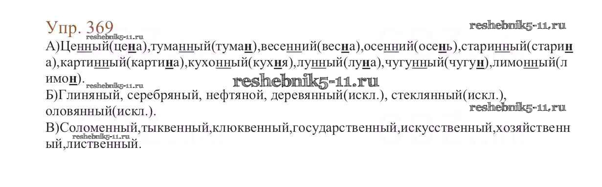 Готовая домашняя работа с ответами по Русскому языку за 6 класс Баранов, Ладыженская, Тростенцова, Григорян, Кулибаба Учебник Часть 1, 2 Просвещение 2015 ФГОС - Упражнения 369