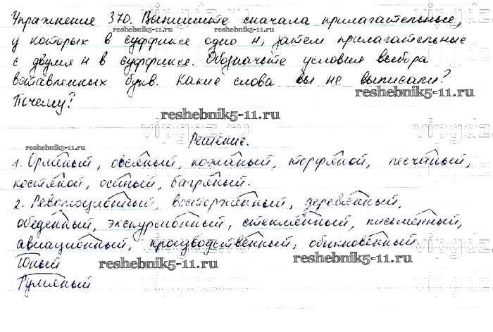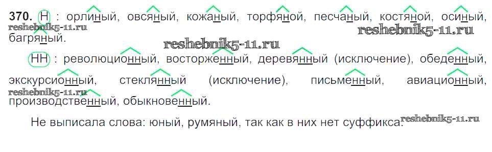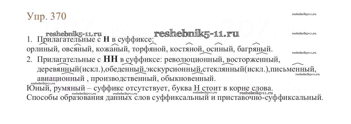 Готовая домашняя работа с ответами по Русскому языку за 6 класс Баранов, Ладыженская, Тростенцова, Григорян, Кулибаба Учебник Часть 1, 2 Просвещение 2015 ФГОС - Упражнения 370