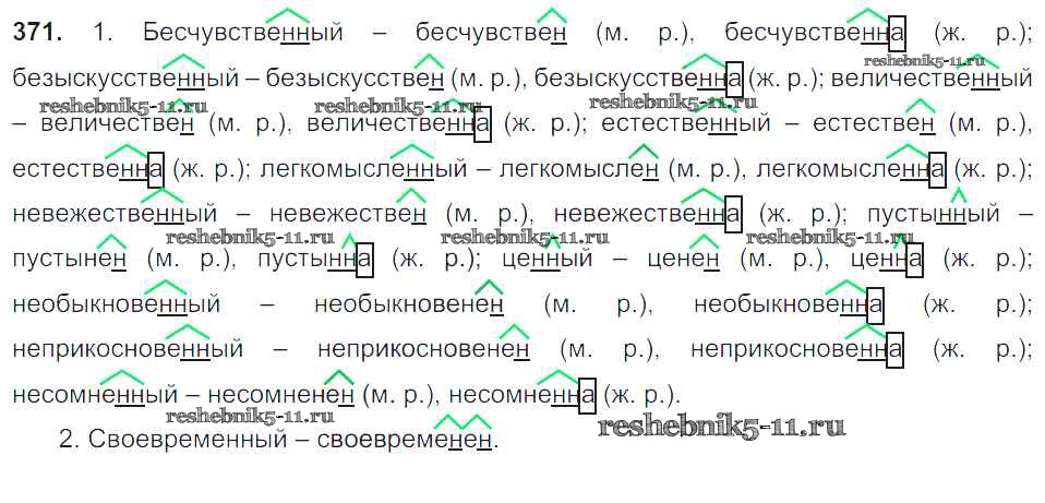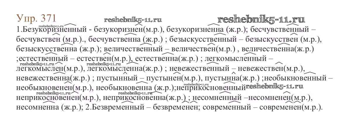 Готовая домашняя работа с ответами по Русскому языку за 6 класс Баранов, Ладыженская, Тростенцова, Григорян, Кулибаба Учебник Часть 1, 2 Просвещение 2015 ФГОС - Упражнения 371