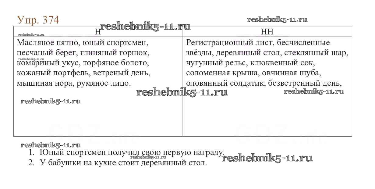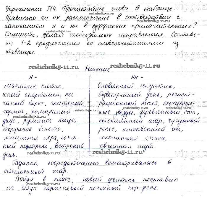 Готовая домашняя работа с ответами по Русскому языку за 6 класс Баранов, Ладыженская, Тростенцова, Григорян, Кулибаба Учебник Часть 1, 2 Просвещение 2015 ФГОС - Упражнения 374