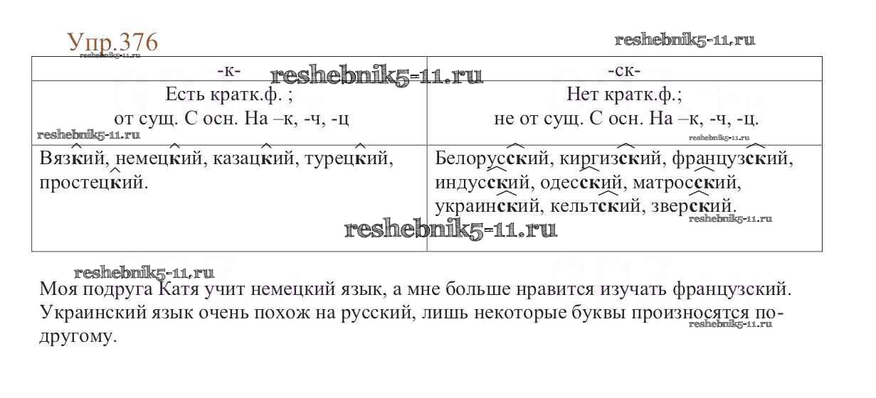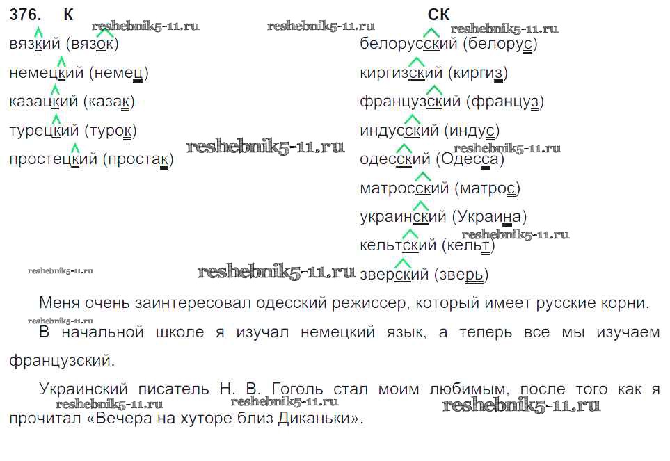 Готовая домашняя работа с ответами по Русскому языку за 6 класс Баранов, Ладыженская, Тростенцова, Григорян, Кулибаба Учебник Часть 1, 2 Просвещение 2015 ФГОС - Упражнения 376