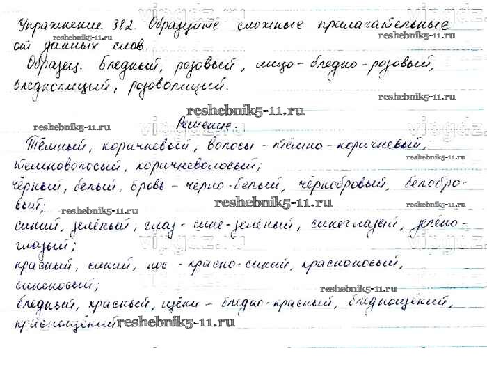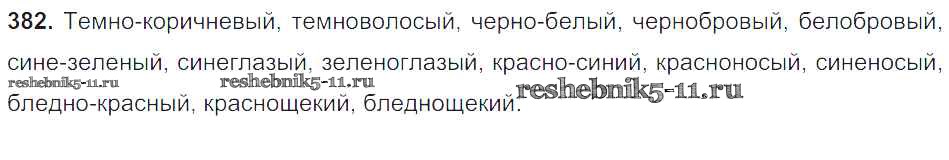 Готовая домашняя работа с ответами по Русскому языку за 6 класс Баранов, Ладыженская, Тростенцова, Григорян, Кулибаба Учебник Часть 1, 2 Просвещение 2015 ФГОС - Упражнения 382