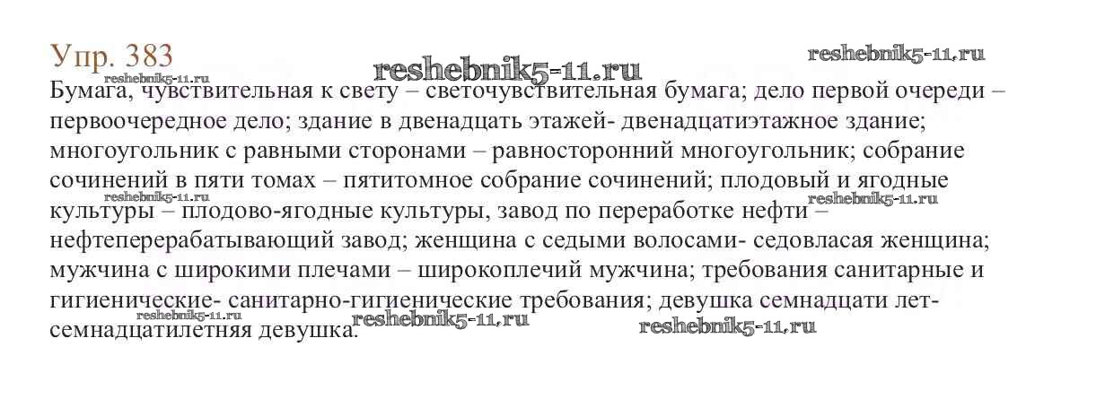 Готовая домашняя работа с ответами по Русскому языку за 6 класс Баранов, Ладыженская, Тростенцова, Григорян, Кулибаба Учебник Часть 1, 2 Просвещение 2015 ФГОС - Упражнения 383