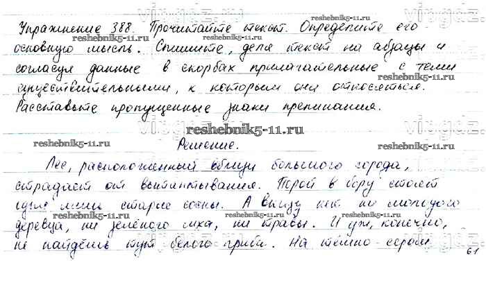 Готовая домашняя работа с ответами по Русскому языку за 6 класс Баранов, Ладыженская, Тростенцова, Григорян, Кулибаба Учебник Часть 1, 2 Просвещение 2015 ФГОС - Упражнения 388