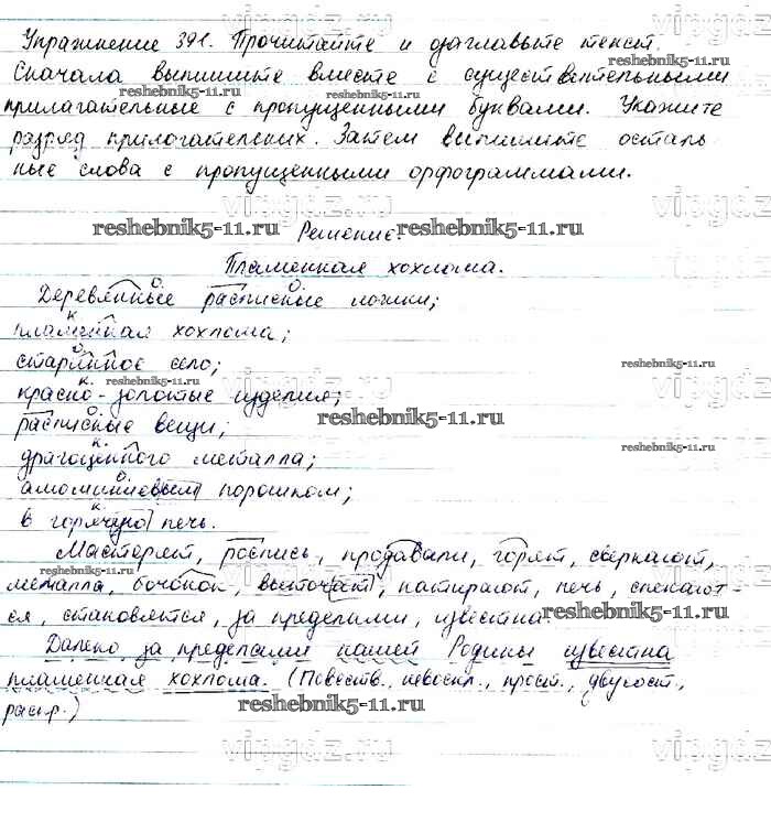 Готовая домашняя работа с ответами по Русскому языку за 6 класс Баранов, Ладыженская, Тростенцова, Григорян, Кулибаба Учебник Часть 1, 2 Просвещение 2015 ФГОС - Упражнения 391