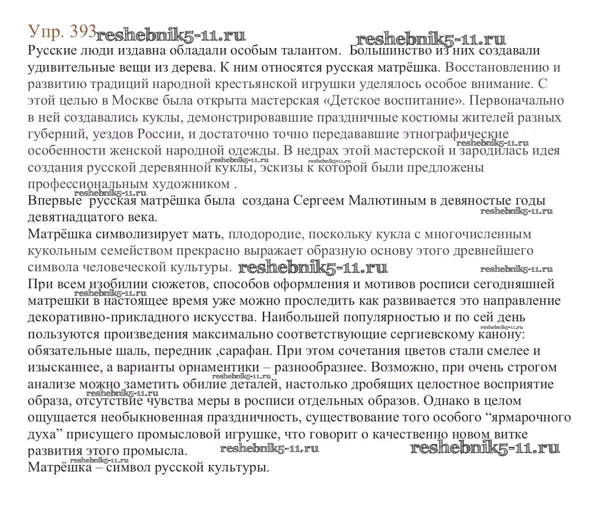 Готовая домашняя работа с ответами по Русскому языку за 6 класс Баранов, Ладыженская, Тростенцова, Григорян, Кулибаба Учебник Часть 1, 2 Просвещение 2015 ФГОС - Упражнения 393