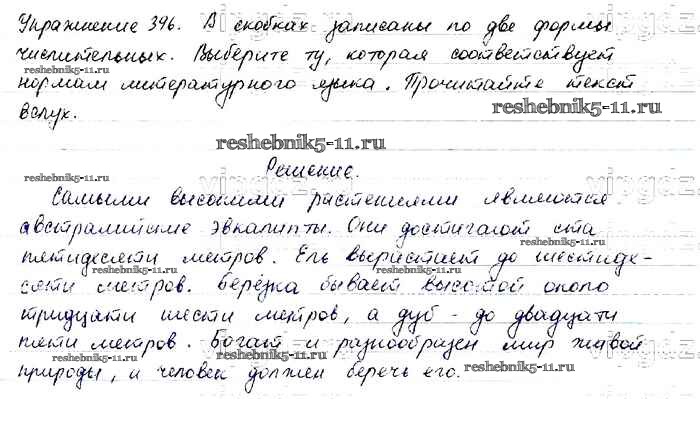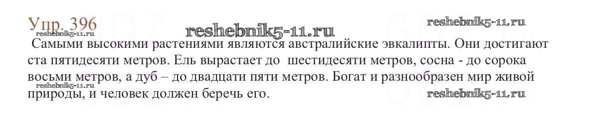 Готовая домашняя работа с ответами по Русскому языку за 6 класс Баранов, Ладыженская, Тростенцова, Григорян, Кулибаба Учебник Часть 1, 2 Просвещение 2015 ФГОС - Упражнения 396
