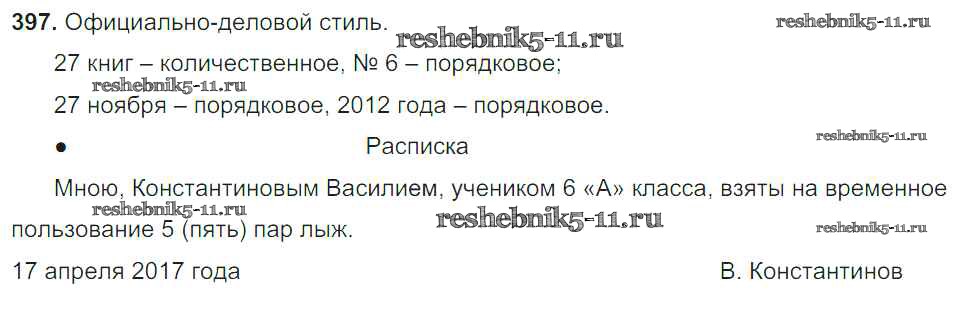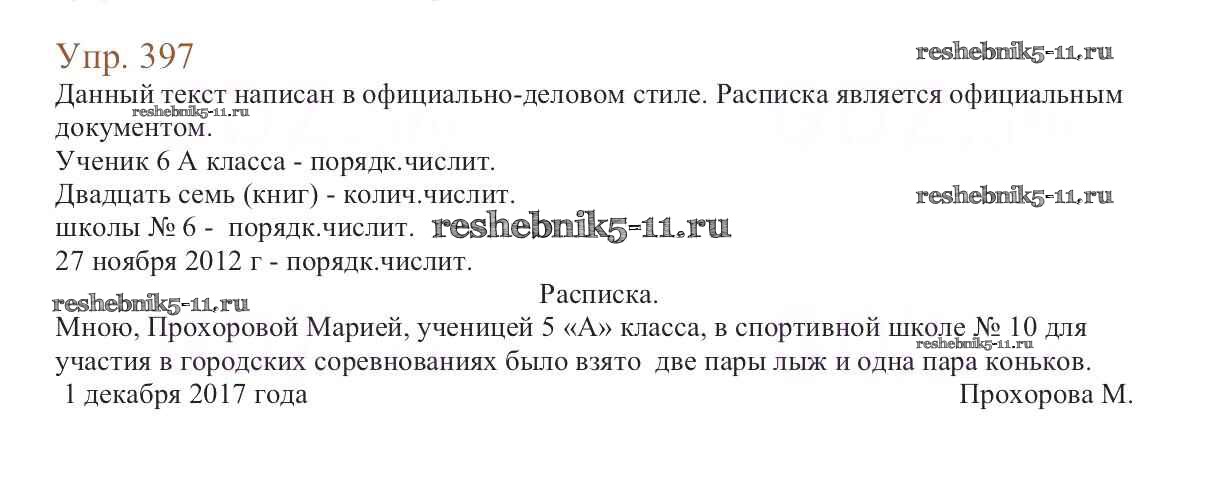 Русский язык за 6 класс Баранов Учебник Просвещение упражнение 397