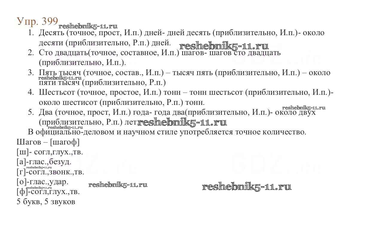 Готовая домашняя работа с ответами по Русскому языку за 6 класс Баранов, Ладыженская, Тростенцова, Григорян, Кулибаба Учебник Часть 1, 2 Просвещение 2015 ФГОС - Упражнения 399
