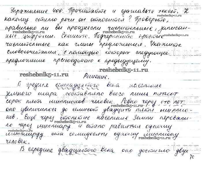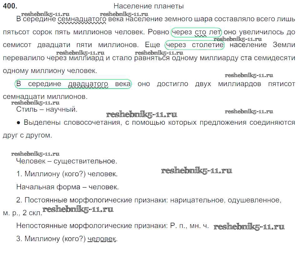 Готовая домашняя работа с ответами по Русскому языку за 6 класс Баранов, Ладыженская, Тростенцова, Григорян, Кулибаба Учебник Часть 1, 2 Просвещение 2015 ФГОС - Упражнения 400