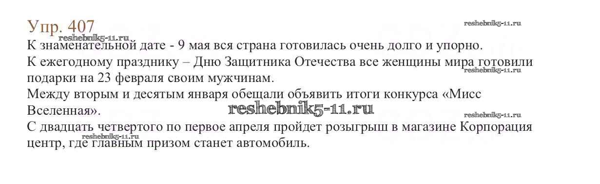 Готовая домашняя работа с ответами по Русскому языку за 6 класс Баранов, Ладыженская, Тростенцова, Григорян, Кулибаба Учебник Часть 1, 2 Просвещение 2015 ФГОС - Упражнения 407