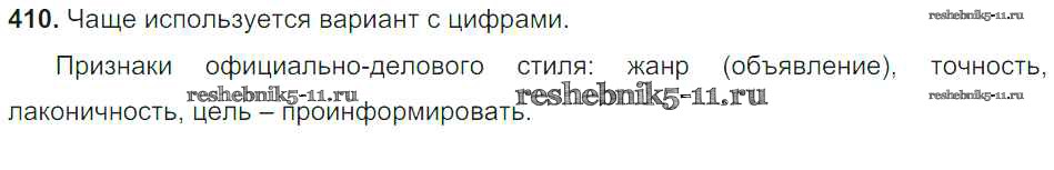 Готовая домашняя работа с ответами по Русскому языку за 6 класс Баранов, Ладыженская, Тростенцова, Григорян, Кулибаба Учебник Часть 1, 2 Просвещение 2015 ФГОС - Упражнения 410