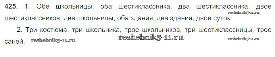 Готовая домашняя работа с ответами по Русскому языку за 6 класс Баранов, Ладыженская, Тростенцова, Григорян, Кулибаба Учебник Часть 1, 2 Просвещение 2015 ФГОС - Упражнения 425