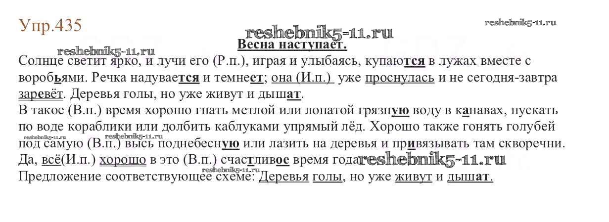 Готовая домашняя работа с ответами по Русскому языку за 6 класс Баранов, Ладыженская, Тростенцова, Григорян, Кулибаба Учебник Часть 1, 2 Просвещение 2015 ФГОС - Упражнения 435