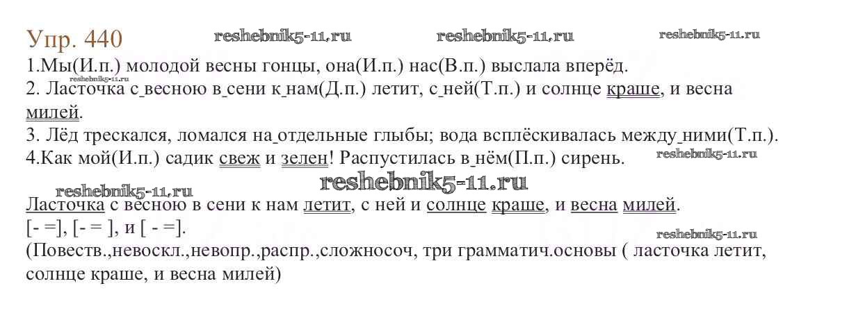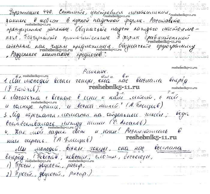 Готовая домашняя работа с ответами по Русскому языку за 6 класс Баранов, Ладыженская, Тростенцова, Григорян, Кулибаба Учебник Часть 1, 2 Просвещение 2015 ФГОС - Упражнения 440