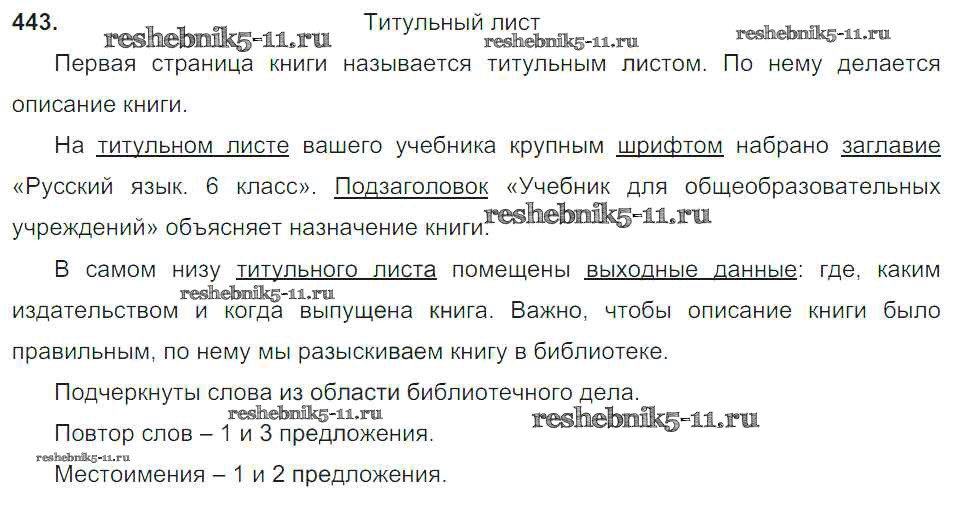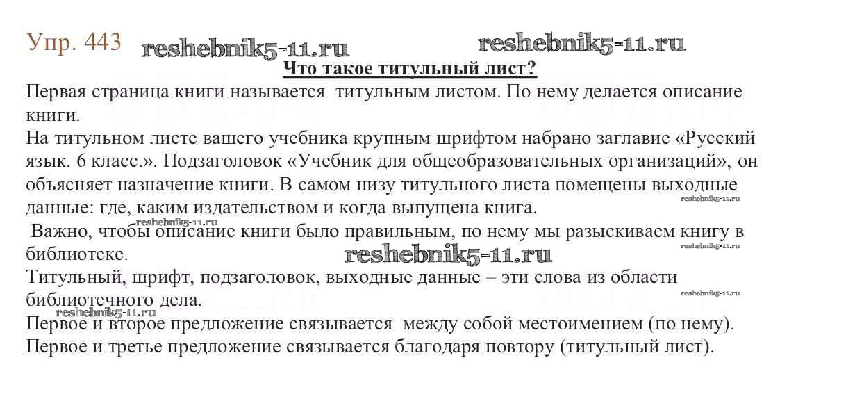 Русский язык за 6 класс Баранов Учебник Просвещение упражнение 443