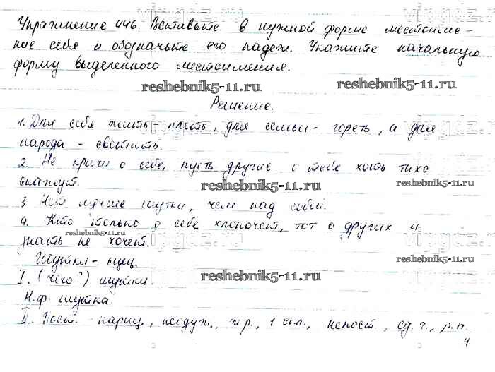 Готовая домашняя работа с ответами по Русскому языку за 6 класс Баранов, Ладыженская, Тростенцова, Григорян, Кулибаба Учебник Часть 1, 2 Просвещение 2015 ФГОС - Упражнения 446