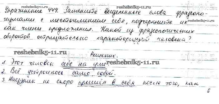 Русский язык за 6 класс Баранов Учебник Просвещение упражнение 449