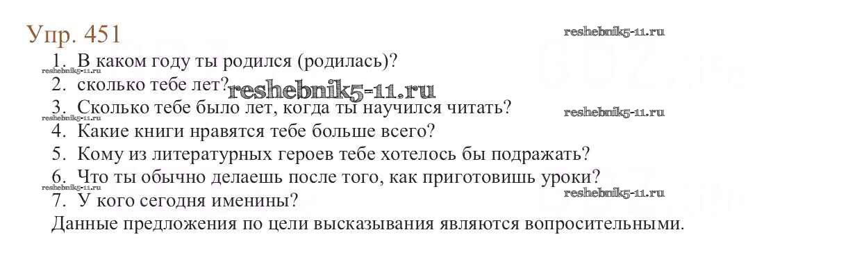 Русский язык за 6 класс Баранов Учебник Просвещение упражнение 451