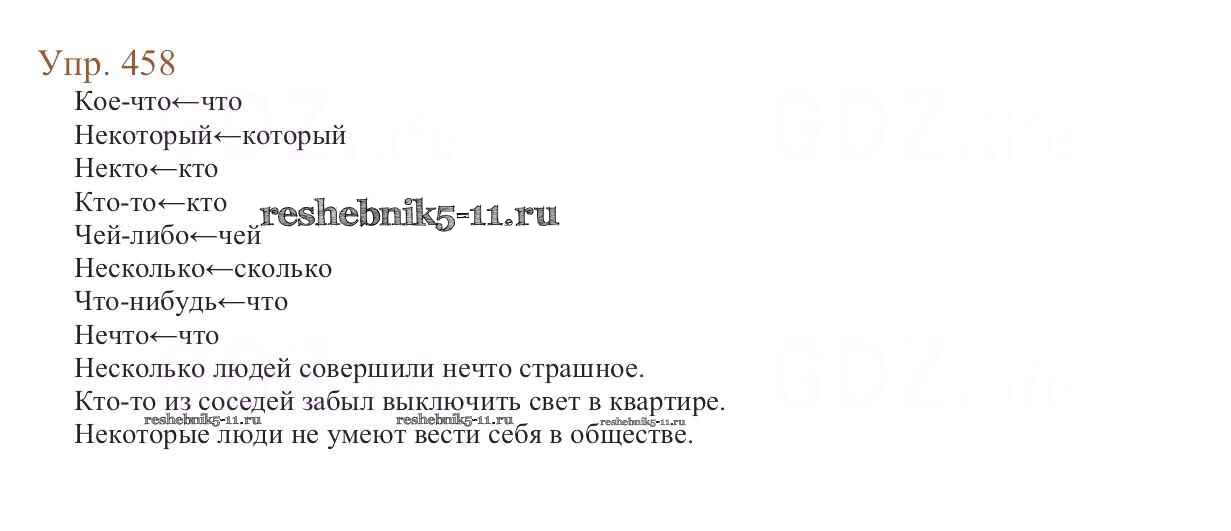 Русский язык за 6 класс Баранов Учебник Просвещение упражнение 458