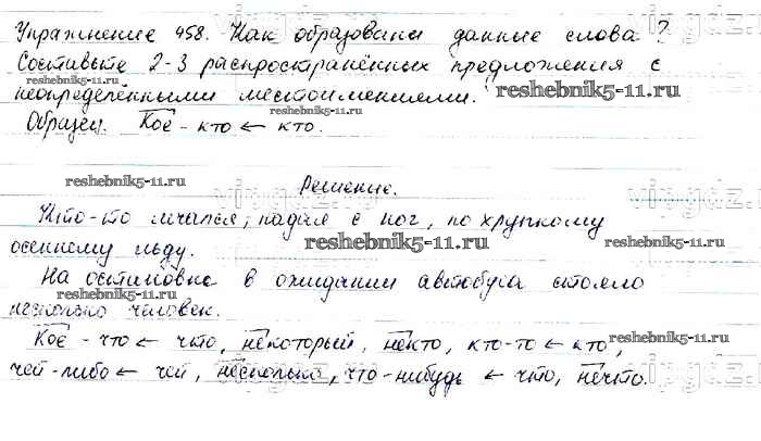 Готовая домашняя работа с ответами по Русскому языку за 6 класс Баранов, Ладыженская, Тростенцова, Григорян, Кулибаба Учебник Часть 1, 2 Просвещение 2015 ФГОС - Упражнения 458