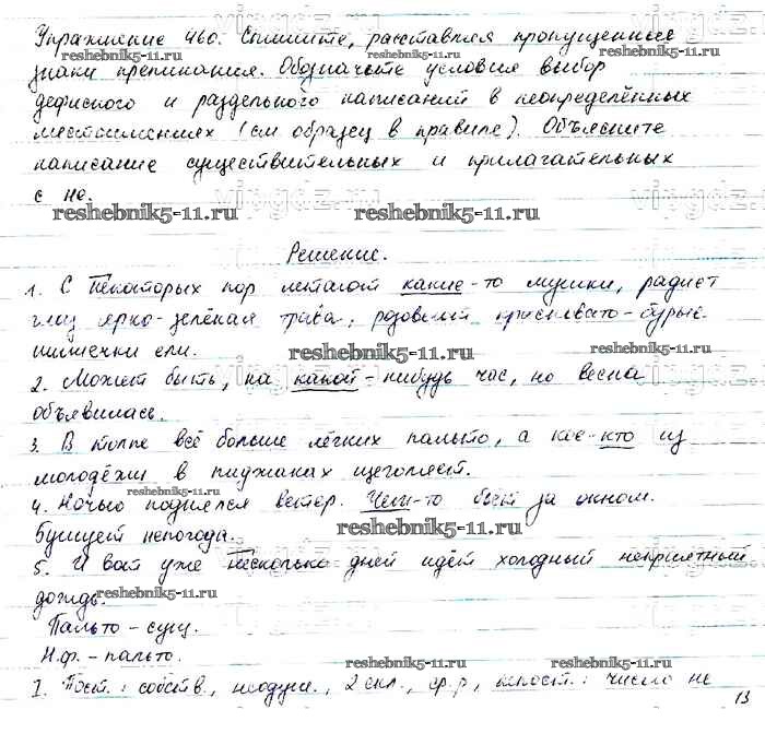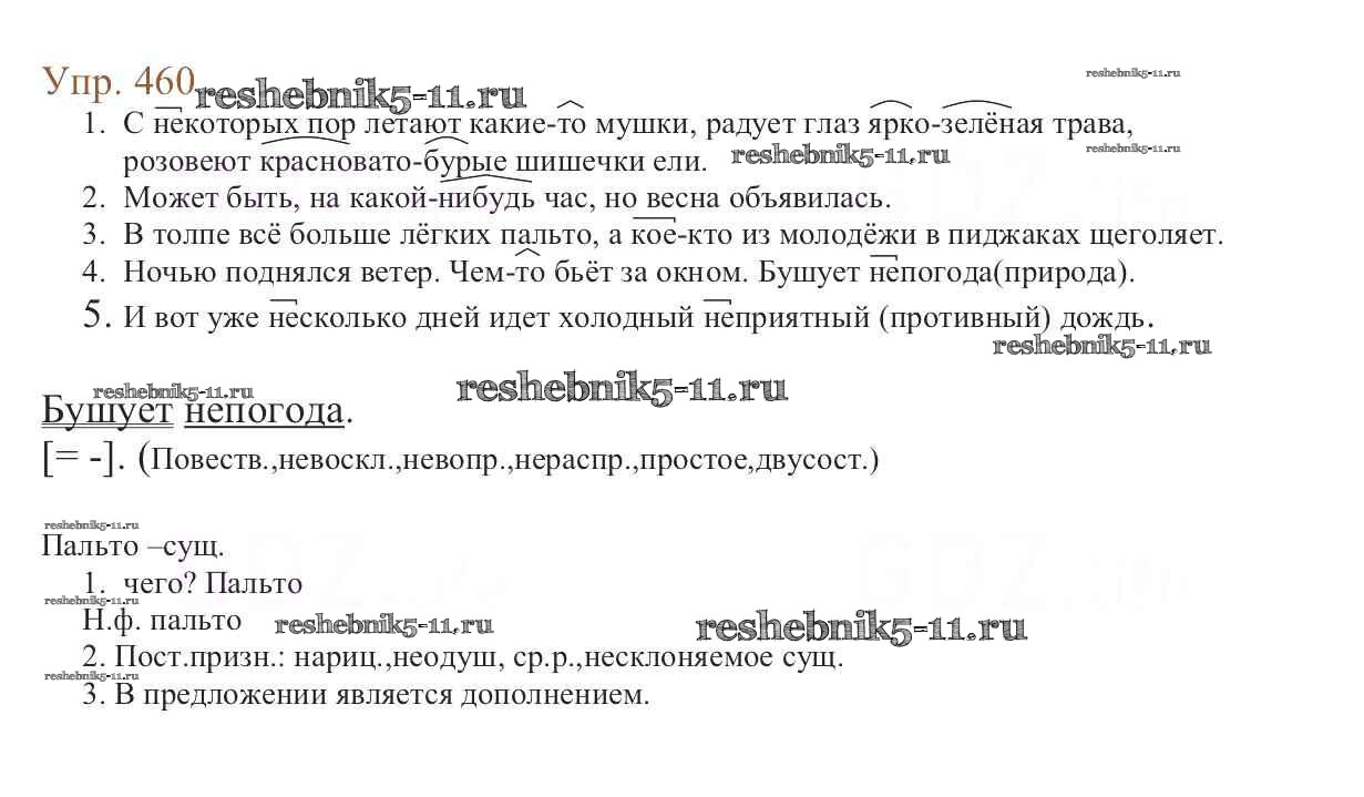 Готовая домашняя работа с ответами по Русскому языку за 6 класс Баранов, Ладыженская, Тростенцова, Григорян, Кулибаба Учебник Часть 1, 2 Просвещение 2015 ФГОС - Упражнения 460