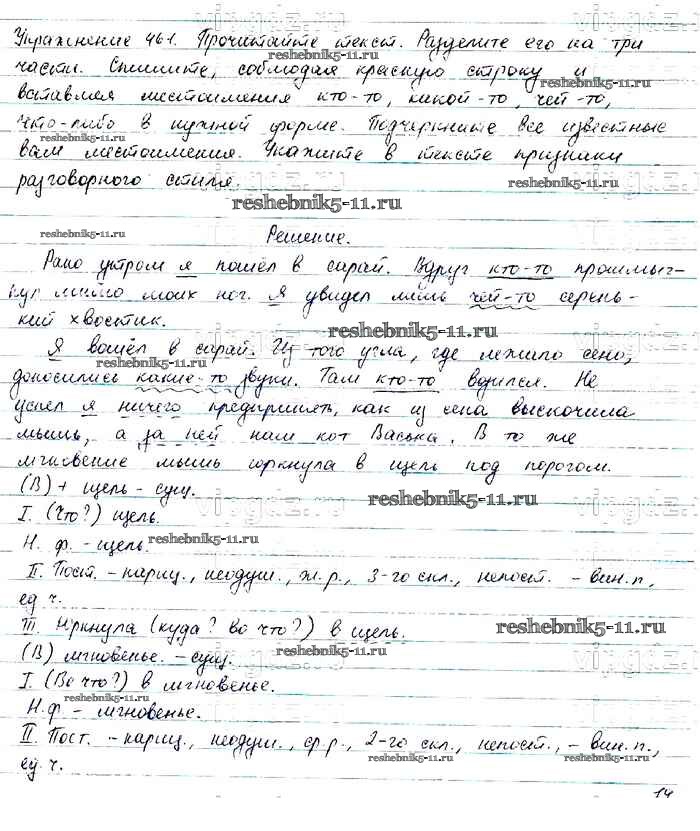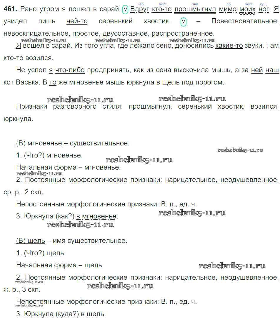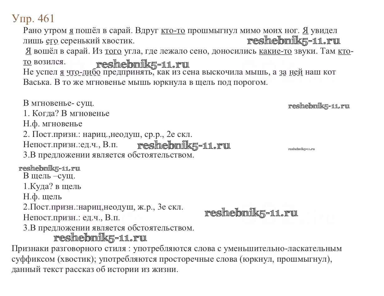 Готовая домашняя работа с ответами по Русскому языку за 6 класс Баранов, Ладыженская, Тростенцова, Григорян, Кулибаба Учебник Часть 1, 2 Просвещение 2015 ФГОС - Упражнения 461
