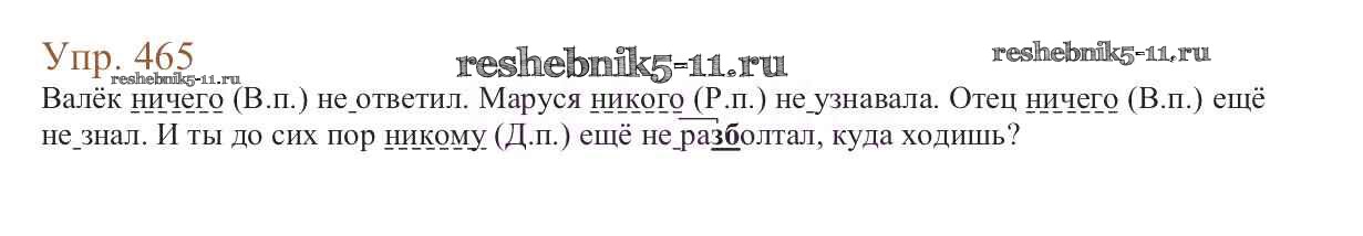 Готовая домашняя работа с ответами по Русскому языку за 6 класс Баранов, Ладыженская, Тростенцова, Григорян, Кулибаба Учебник Часть 1, 2 Просвещение 2015 ФГОС - Упражнения 465