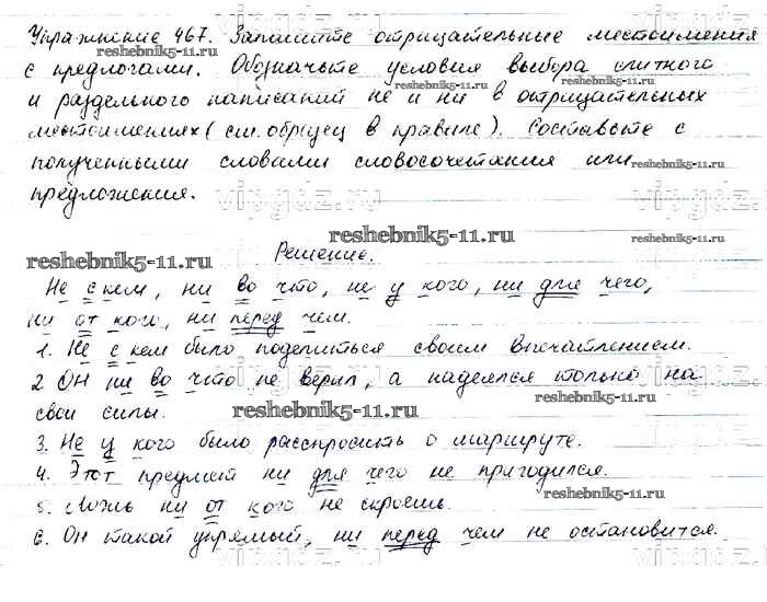 Готовая домашняя работа с ответами по Русскому языку за 6 класс Баранов, Ладыженская, Тростенцова, Григорян, Кулибаба Учебник Часть 1, 2 Просвещение 2015 ФГОС - Упражнения 467