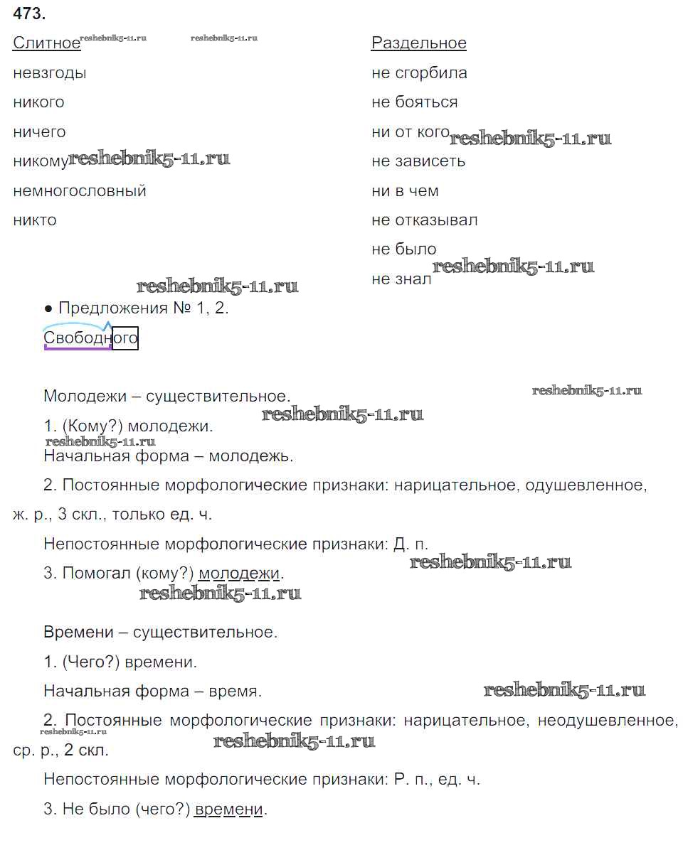 Готовая домашняя работа с ответами по Русскому языку за 6 класс Баранов, Ладыженская, Тростенцова, Григорян, Кулибаба Учебник Часть 1, 2 Просвещение 2015 ФГОС - Упражнения 473