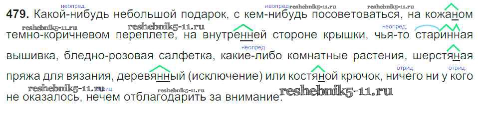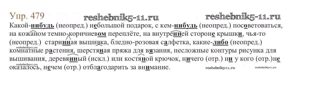 Готовая домашняя работа с ответами по Русскому языку за 6 класс Баранов, Ладыженская, Тростенцова, Григорян, Кулибаба Учебник Часть 1, 2 Просвещение 2015 ФГОС - Упражнения 479