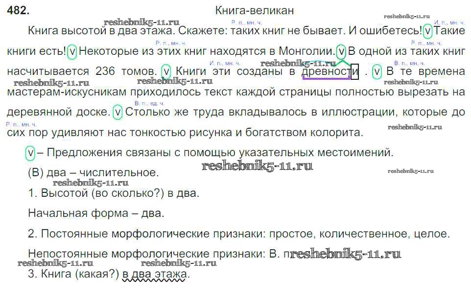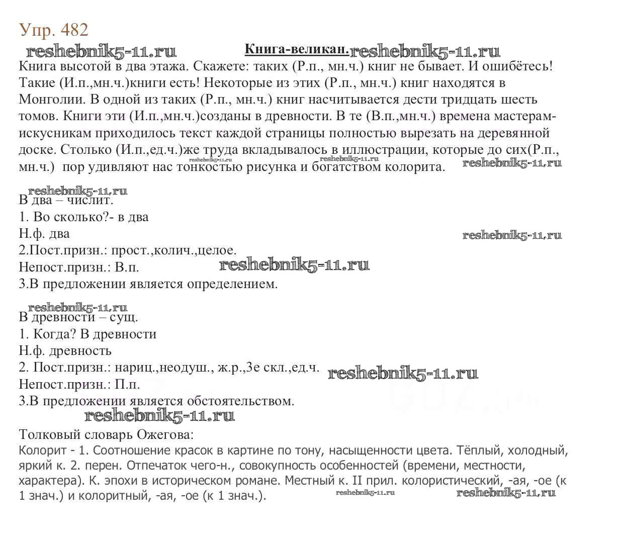 Готовая домашняя работа с ответами по Русскому языку за 6 класс Баранов, Ладыженская, Тростенцова, Григорян, Кулибаба Учебник Часть 1, 2 Просвещение 2015 ФГОС - Упражнения 482