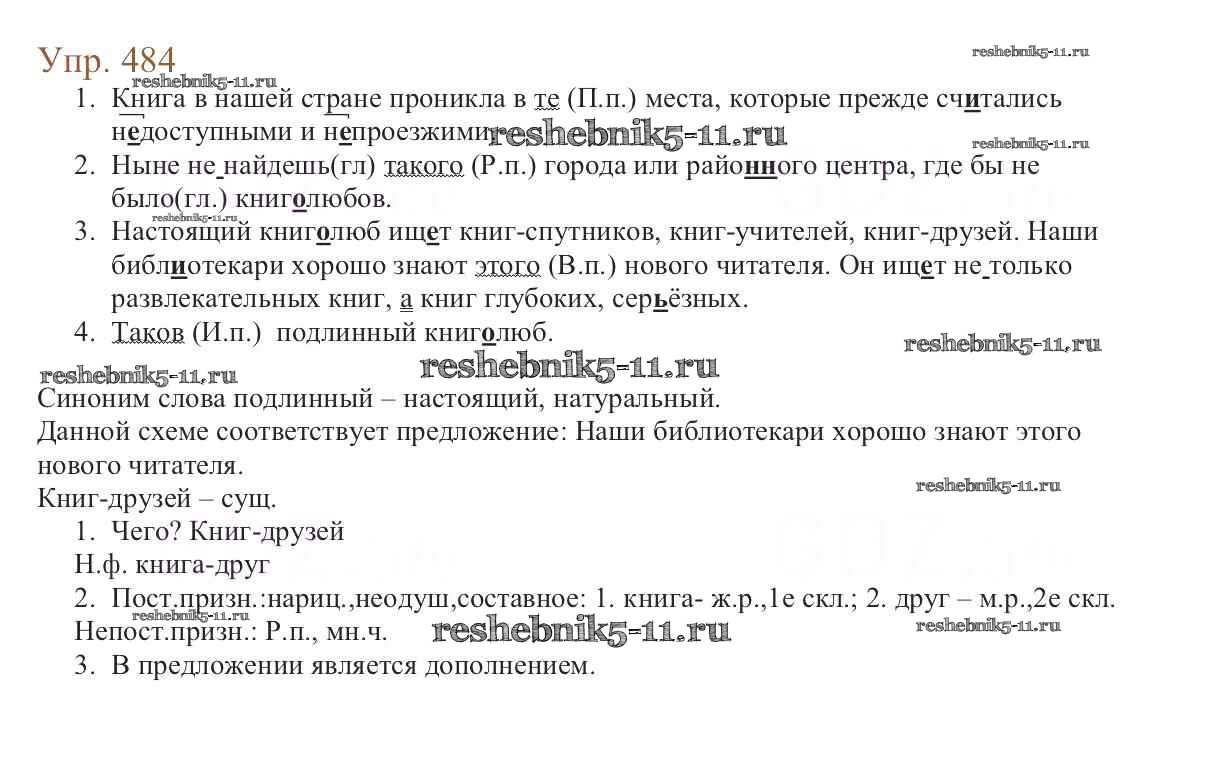 Готовая домашняя работа с ответами по Русскому языку за 6 класс Баранов, Ладыженская, Тростенцова, Григорян, Кулибаба Учебник Часть 1, 2 Просвещение 2015 ФГОС - Упражнения 484