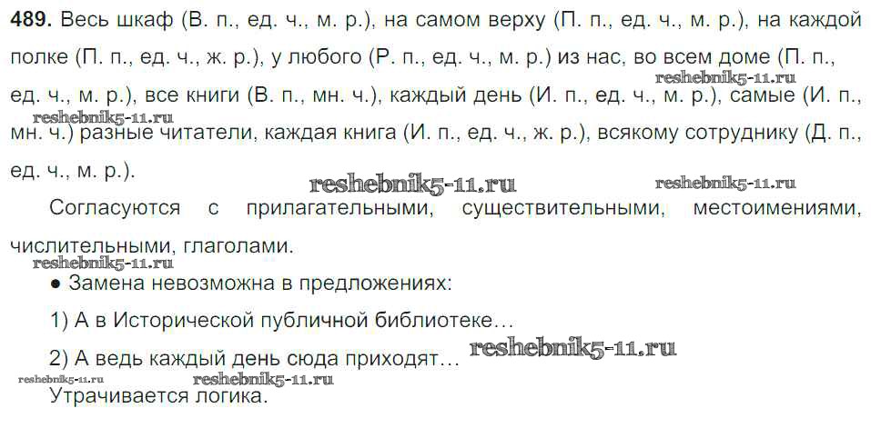 Русский язык за 6 класс Баранов Учебник Просвещение упражнение 489