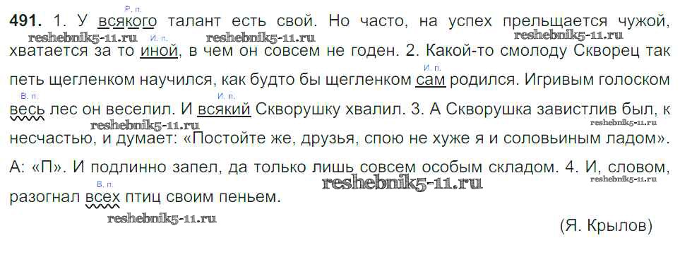 Русский язык за 6 класс Баранов Учебник Просвещение упражнение 491