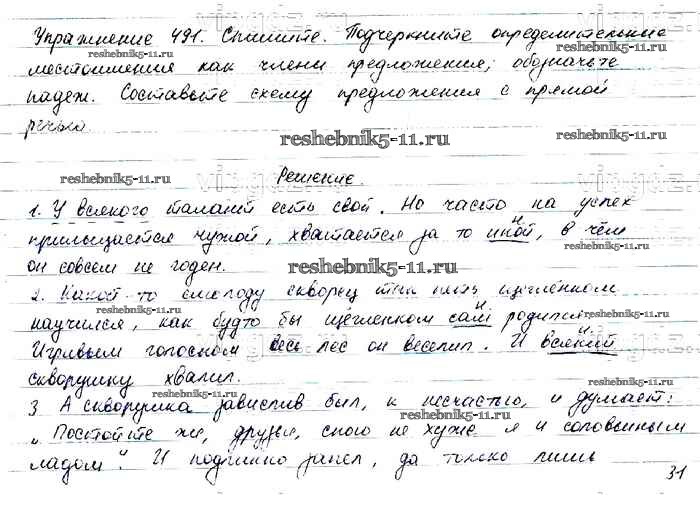 Готовая домашняя работа с ответами по Русскому языку за 6 класс Баранов, Ладыженская, Тростенцова, Григорян, Кулибаба Учебник Часть 1, 2 Просвещение 2015 ФГОС - Упражнения 491