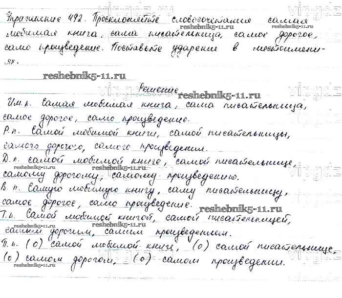 Готовая домашняя работа с ответами по Русскому языку за 6 класс Баранов, Ладыженская, Тростенцова, Григорян, Кулибаба Учебник Часть 1, 2 Просвещение 2015 ФГОС - Упражнения 492