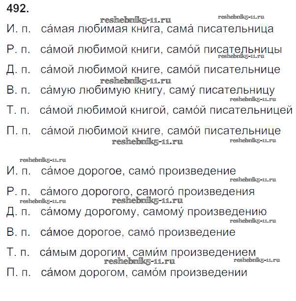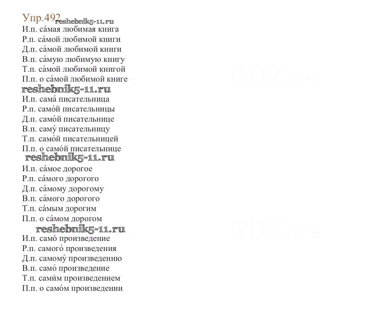 Русский язык за 6 класс Баранов Учебник Просвещение упражнение 492