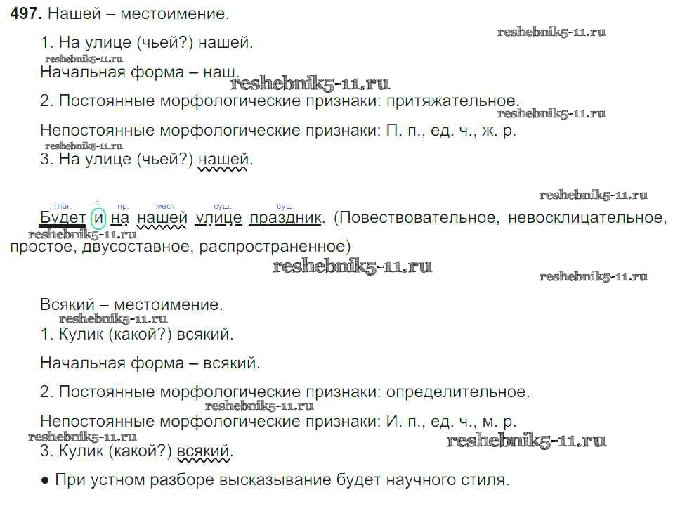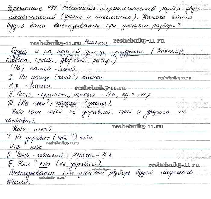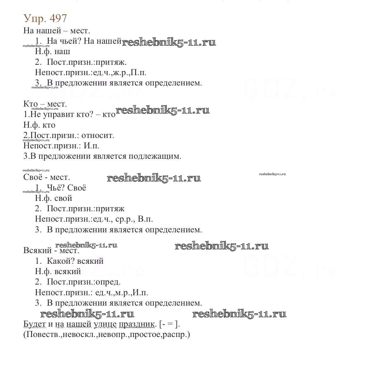 Готовая домашняя работа с ответами по Русскому языку за 6 класс Баранов, Ладыженская, Тростенцова, Григорян, Кулибаба Учебник Часть 1, 2 Просвещение 2015 ФГОС - Упражнения 497