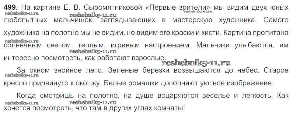 Готовая домашняя работа с ответами по Русскому языку за 6 класс Баранов, Ладыженская, Тростенцова, Григорян, Кулибаба Учебник Часть 1, 2 Просвещение 2015 ФГОС - Упражнения 499