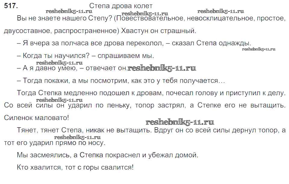 Русский язык за 6 класс Баранов Учебник Просвещение упражнение 517