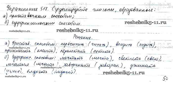 Готовая домашняя работа с ответами по Русскому языку за 6 класс Баранов, Ладыженская, Тростенцова, Григорян, Кулибаба Учебник Часть 1, 2 Просвещение 2015 ФГОС - Упражнения 518