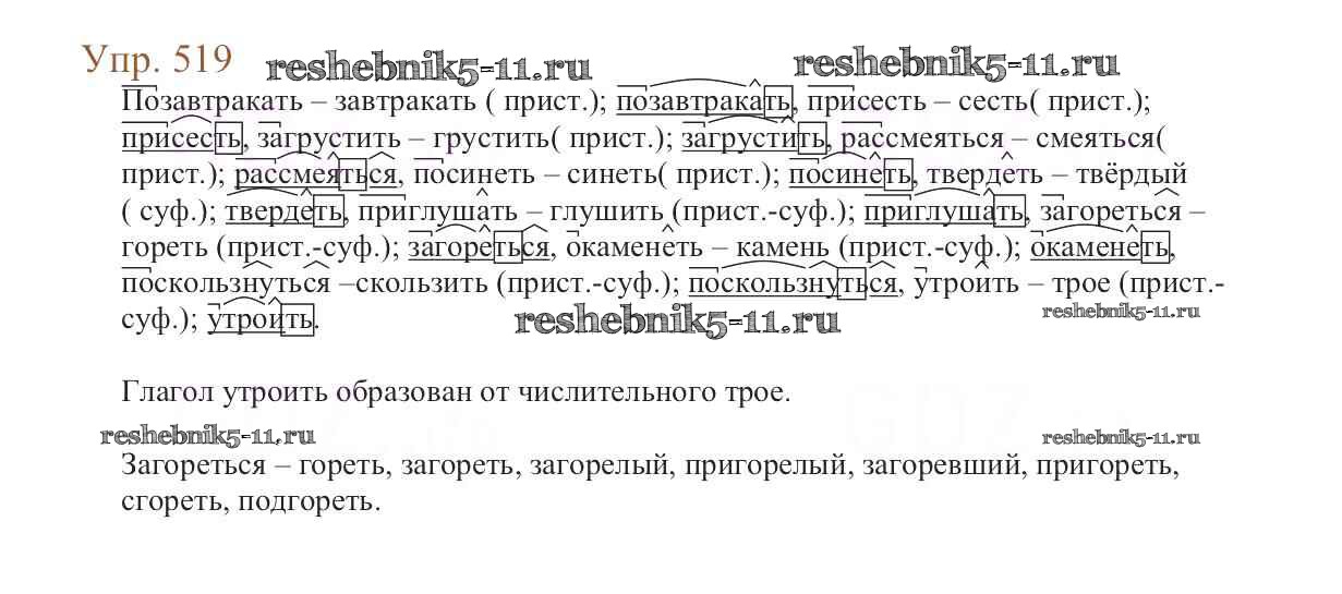 Готовая домашняя работа с ответами по Русскому языку за 6 класс Баранов, Ладыженская, Тростенцова, Григорян, Кулибаба Учебник Часть 1, 2 Просвещение 2015 ФГОС - Упражнения 519