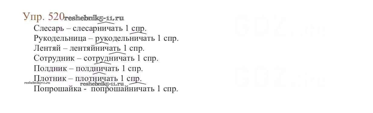 Готовая домашняя работа с ответами по Русскому языку за 6 класс Баранов, Ладыженская, Тростенцова, Григорян, Кулибаба Учебник Часть 1, 2 Просвещение 2015 ФГОС - Упражнения 520
