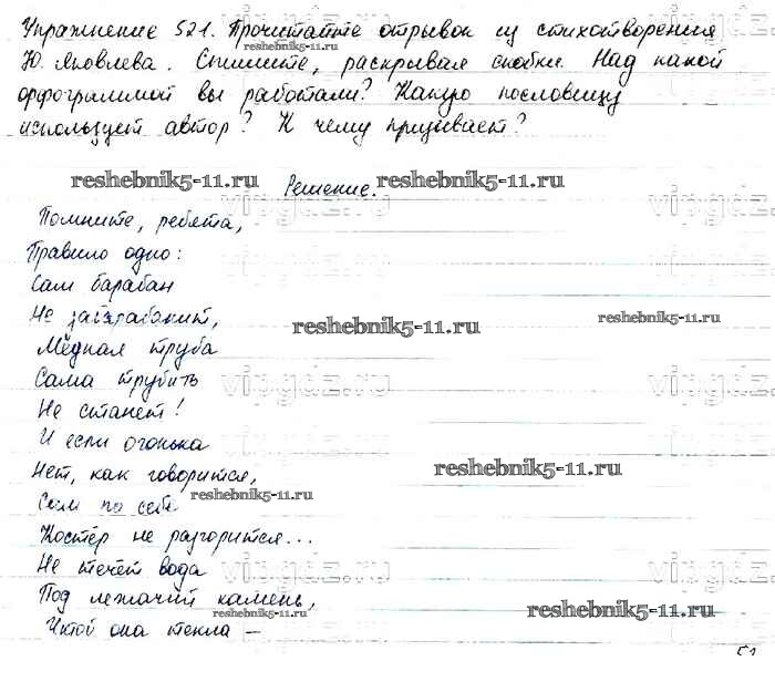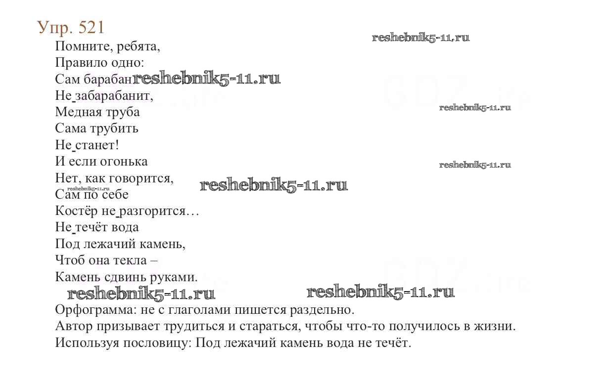 Готовая домашняя работа с ответами по Русскому языку за 6 класс Баранов, Ладыженская, Тростенцова, Григорян, Кулибаба Учебник Часть 1, 2 Просвещение 2015 ФГОС - Упражнения 521