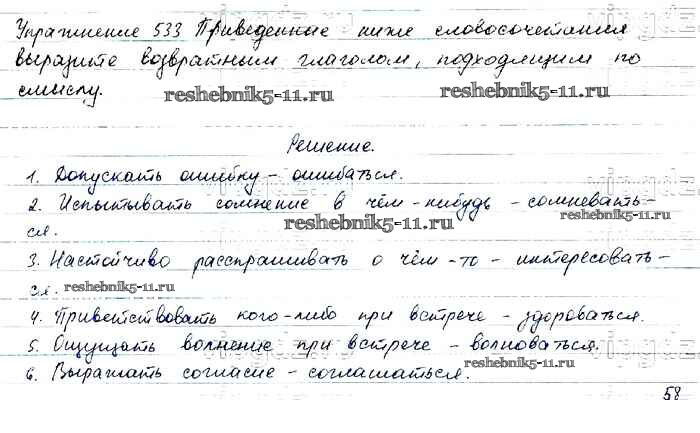Русский язык за 6 класс Баранов Учебник Просвещение упражнение 533