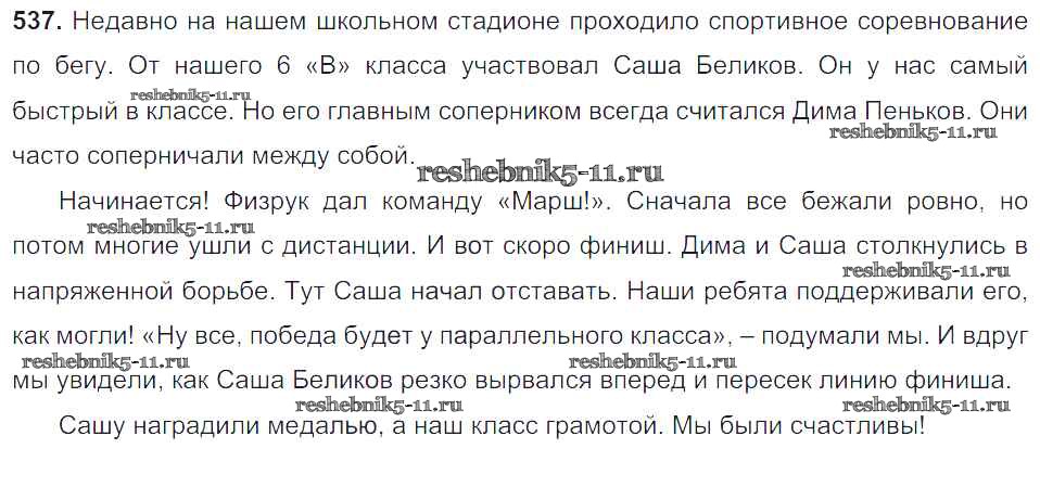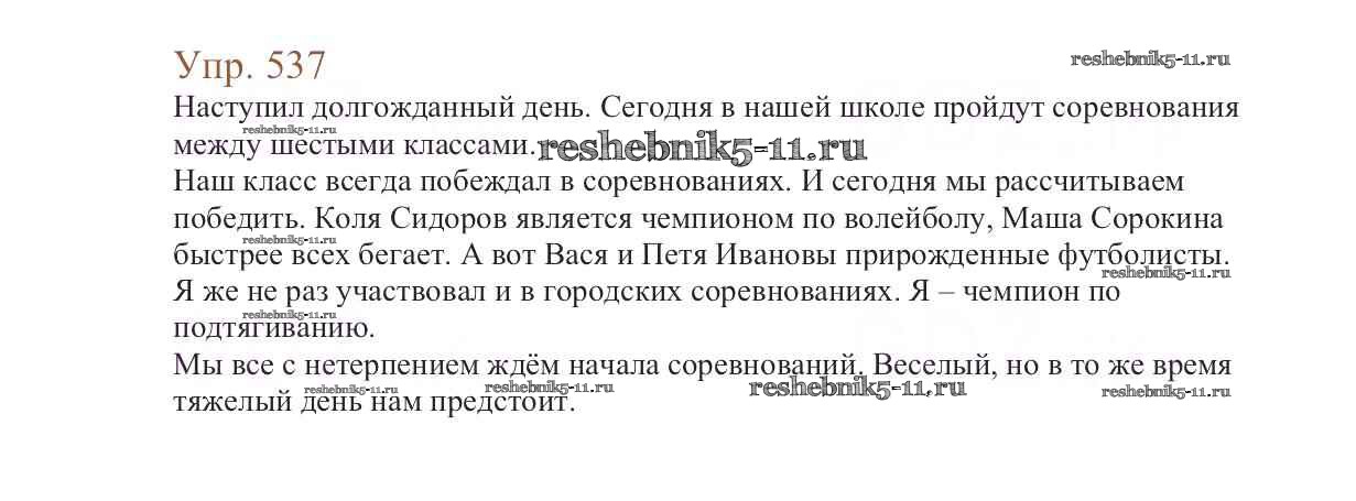 Готовая домашняя работа с ответами по Русскому языку за 6 класс Баранов, Ладыженская, Тростенцова, Григорян, Кулибаба Учебник Часть 1, 2 Просвещение 2015 ФГОС - Упражнения 537